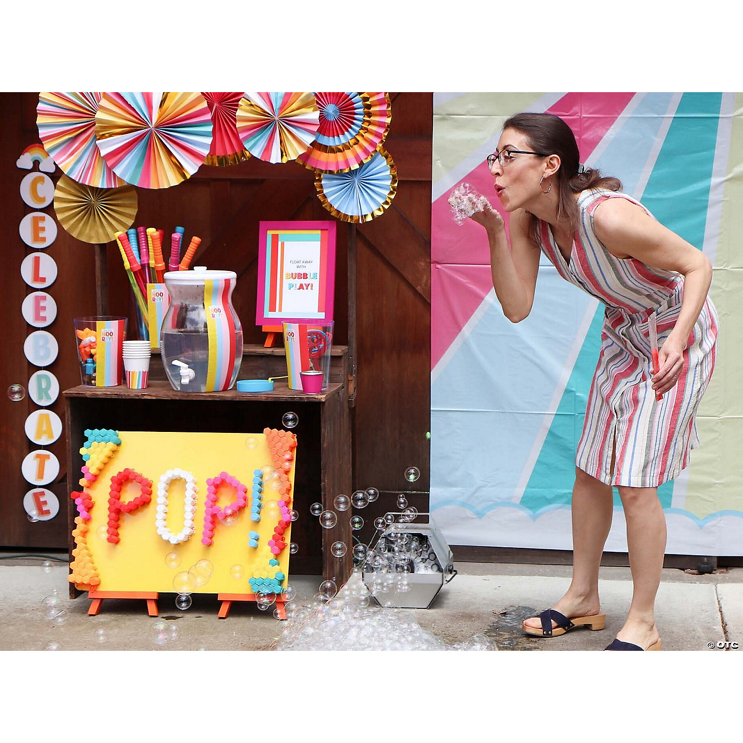 Give your guests the magic of bubbles with this Bubble Machine. A perfect addition to birthday party supplies, playdate essentials, classroom and community center fun, this bubble machine will fill the air with bubbles, cheer, and huge smiles as kids of all ages chase the bubbles around. Make any dance party event better with this simple addition. Every party is more fun with bubbles!