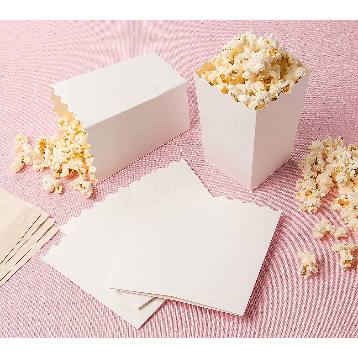 100 Pack White Popcorn Boxes for Party, Bulk Paper Treat Containers for Movie Night Decorations, 3.3 x 5.5 x 3.5 in