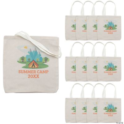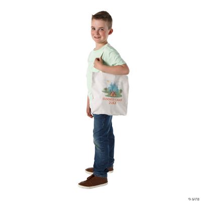 Cap off the fun at any camp-themed party or outing by handing out these personalized tote bags. Each bag is made of sturdy material and features a colorful camping image that can be customized with a short message to fit any occasion. A great grab for birthdays, VBS programs and summer camps, these totes are perfect for storing program materials and earned prizes. Personalize with 2 lines of text.