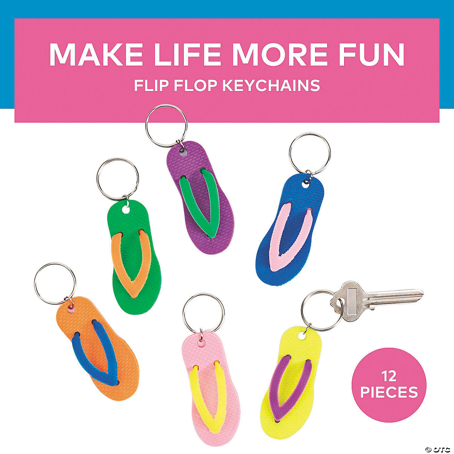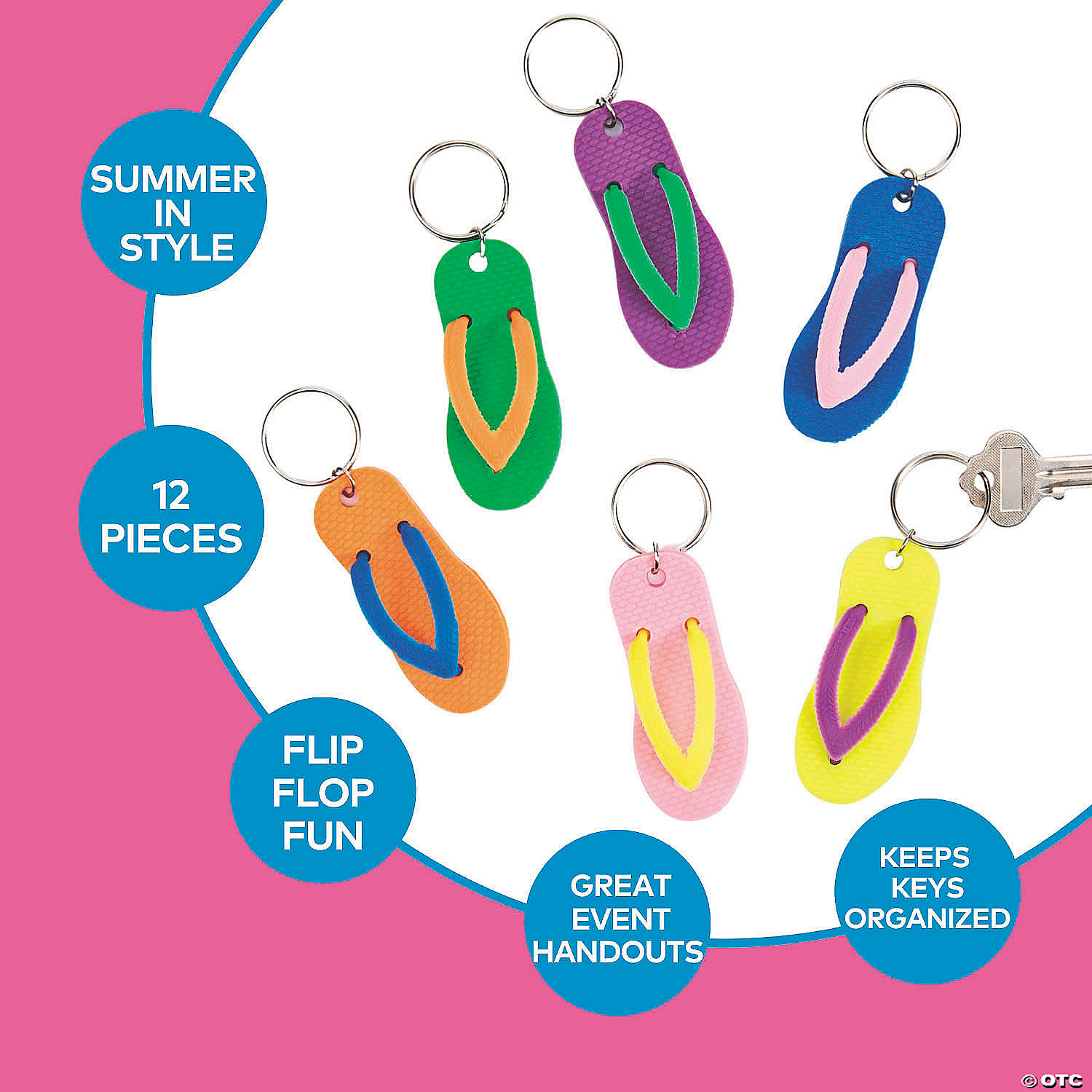 • WHAT'S INCLUDED: This set includes an assortment of 12 mini flip flop keychains. You get 2 of each color: orange with blue, yellow with purple, green with orange, blue with pink, purple with green and pink with yellow.