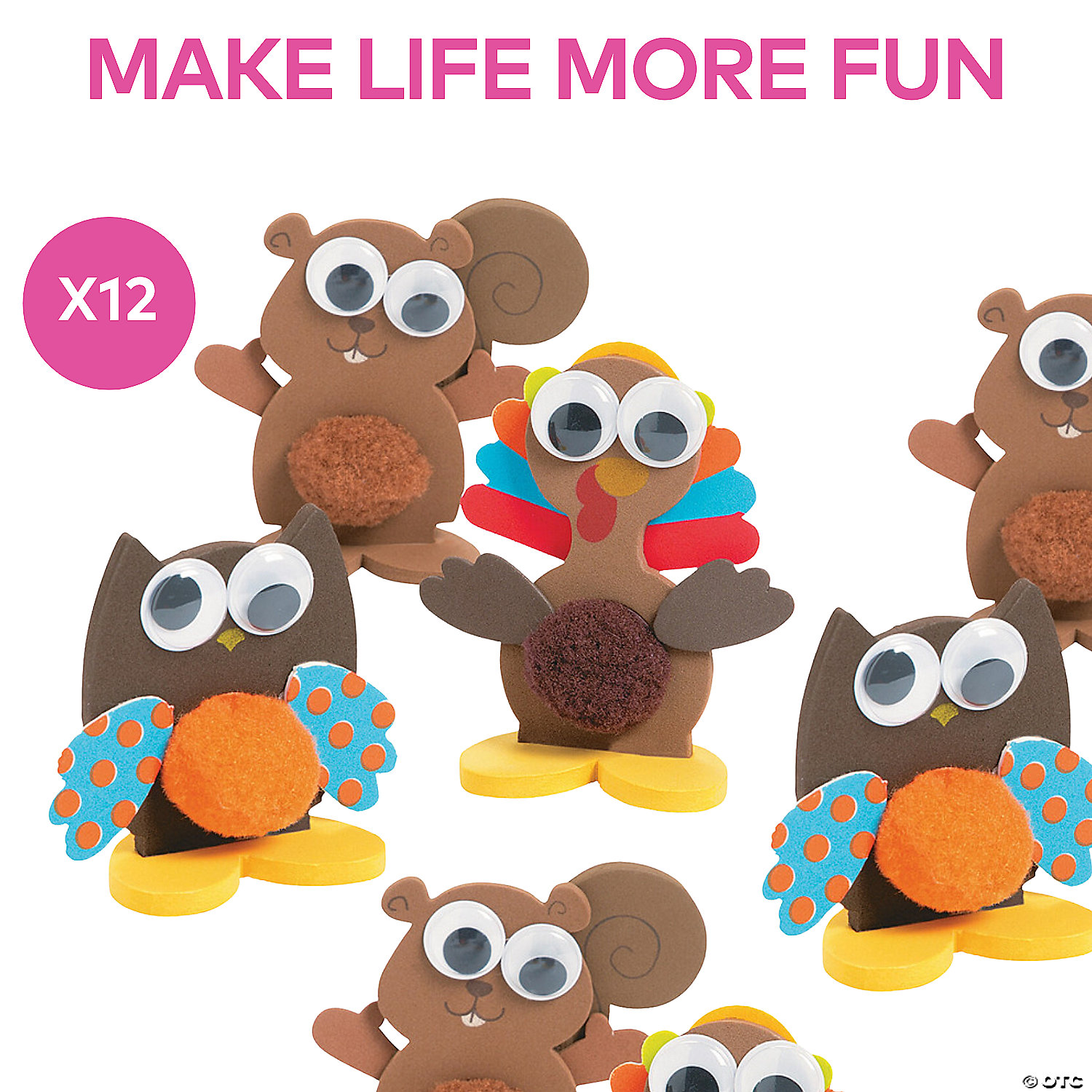 Create some new friends for fall when you include this 3D Pom-Pom Fall Pal Craft Kit in your craft supplies. Featuring cute, little characters that will match perfectly with the rest of your fall decorations, each craft kit includes self-adhesive foam pieces, pom-poms and googly eyes. Hand these out to students in your classroom, or bring them home for a fun DIY activity. 3 1/2" x 3 1/4" All craft kit pieces are pre-packaged for individual use. Kits include instructions and extra pieces. Makes 12. © OTC
