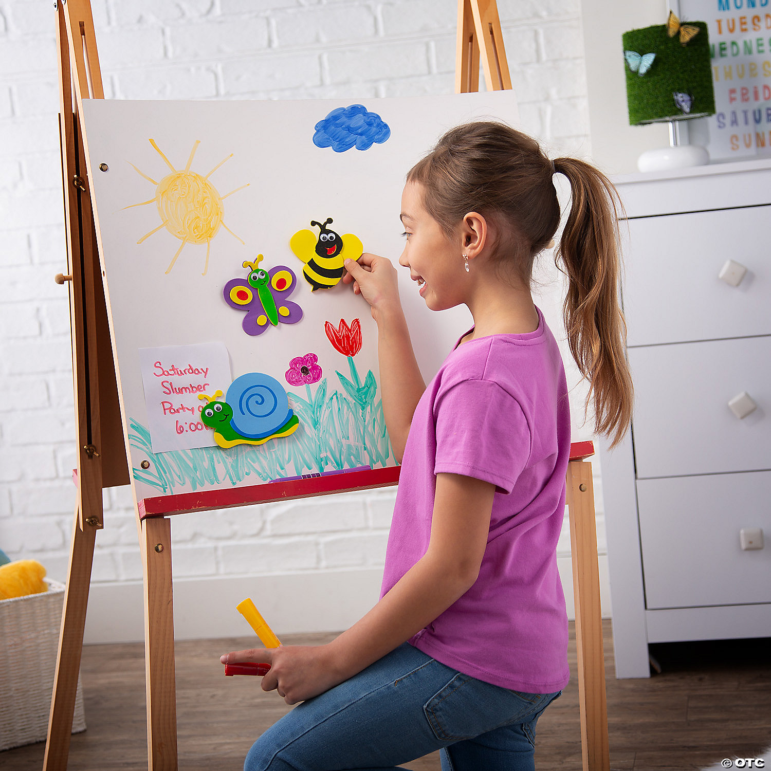 “Bee” ready for a rainy day with this fun activity. Perfect for spring projects, the Bug Magnet Craft Kit lets kids make cute decorations they can display on the fridge. Spring practically comes to life when you use the Bug Magnet Craft Kit to create the bee, snail and butterfly designs. Little ones will bug out when they see their adorable magnetic creations! Includes self-adhesive foam pieces and googly eyes. All craft kit pieces are pre-packaged for individual use. Magnets are packaged separately. Do not discard. Kits include instructions. Makes 12. © OTC
