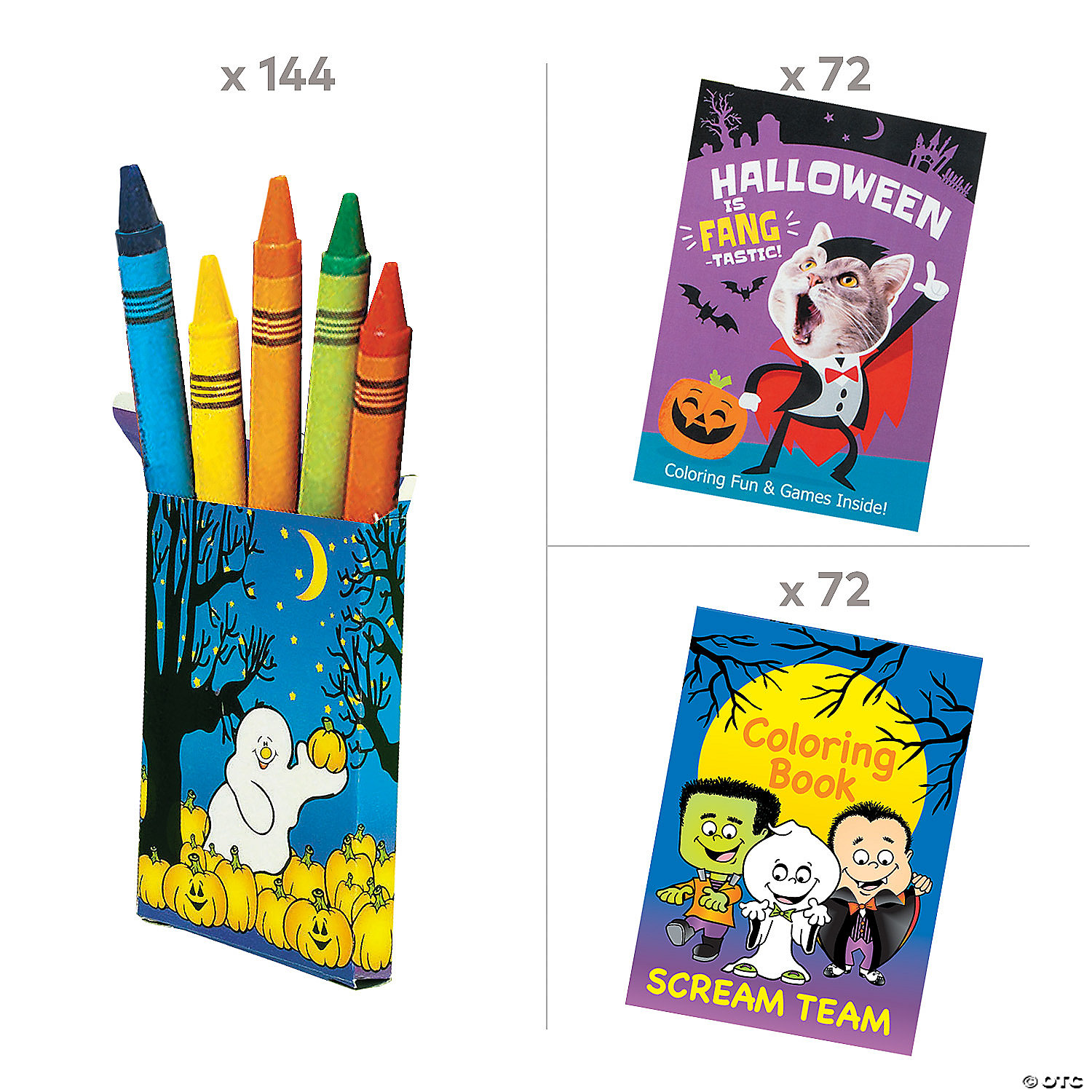 5" x 7" Bulk Halloween Coloring Books & 6-Color Crayon Boxes Kit for 144