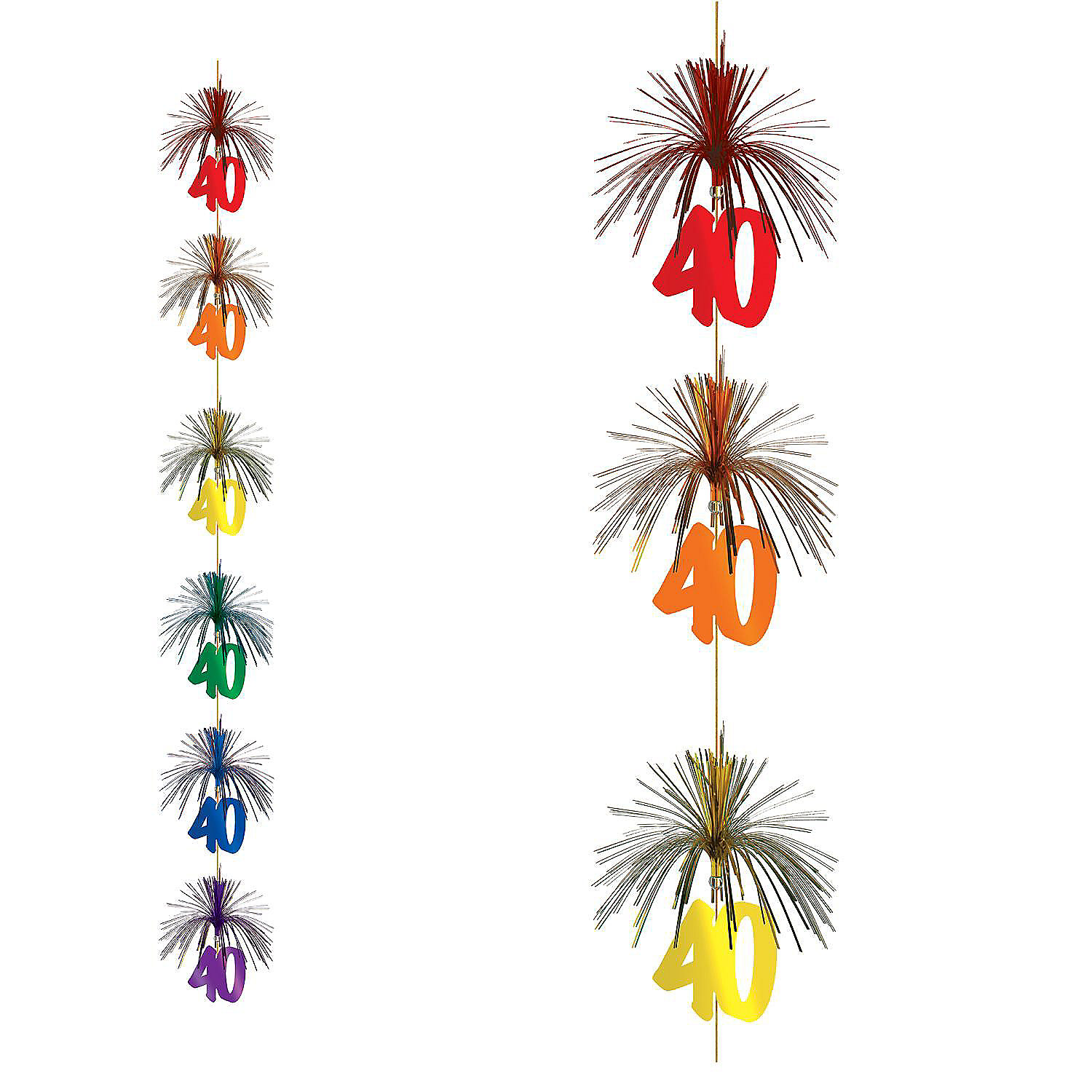 Add an extra pop to your birthday celebration with the 40 Firework Stringer! This hanging decoration is perfect for age-specific birthday themes, measuring 7 feet long and featuring vibrant colors to create a festive atmosphere. Key Product Features 1) Length: 7 feet. 2) Theme: Birthday-Age Specific. 3) Easy to hang as a decoration. 4) Vibrant colors for a festive look