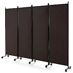 Costway 4-Panel Folding Room Divider 6FT Rolling Privacy Screen with Lockable Wheels Brown