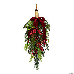 National Tree Company 28" Artificial Christmas Joy Teardrop Swag with Red Berries and Bow