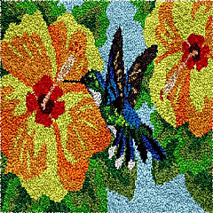 LovelyLust.com Hummingbird Yellow Flower Rug Making Latch Hooking Kit (122x92cm Printed canvas)
