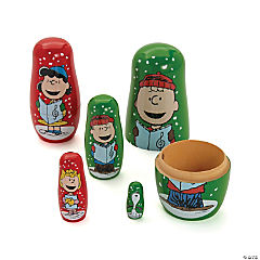 1" - 5" Peanuts® Christmas Red & Green Wood Nesting Dolls - 5 Pc.