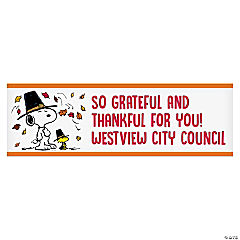 90" x 29" Personalized Thanksgiving Peanuts® Snoopy & Woodstock Vinyl Banner - Large
