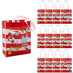 9" x 11" Medium Red & White Striped Dr. Seuss™ Nonwoven Laminated Shopper Tote Bags – 12 Pc.