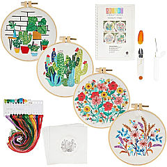 14 Piece Set Floral Hand Embroidery Kit Hand Cross Stitch Sewing Crafts with Yarn, Hoops, Needles, Scissors, 4 Patterns