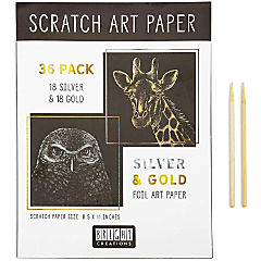 36 Scratch Sheets with 2 Wooden Styluses for Arts and Crafts, Gold and Silver Foil (8.5 x 11 in)