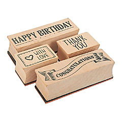4-Piece Card Making Stamps Set - Wood Mounted Rubber Stamps for Card Making - Happy Birthday, Thank You, Congratulations, with Love