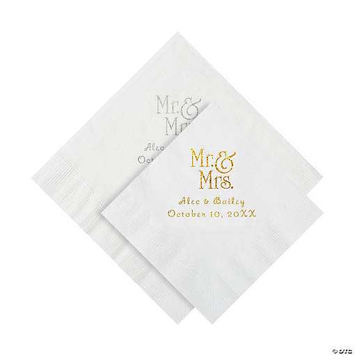 - Bulk 50 Ct. Personalized Mr. & Mrs. Beverage or Luncheon Napkins