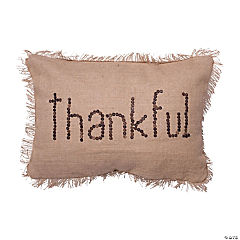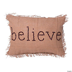 Vickerman Tan Burlap Button Wording 14" x 20" Throw Pillow