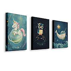 Celestial Creatures Set of 3 Gallery Wrapped Canvas by Dancing Littles Jungle - Size 8x10 Inch