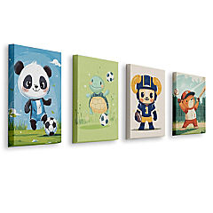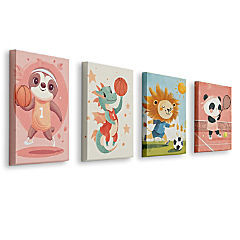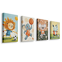 Power Players Set of 4 Gallery Wrapped Canvas by Dancing Littles Jungle - Size 8x10 Inch