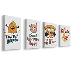 Foodie Frenzy Set of 4 Gallery Wrapped Canvas by Dancing Littles Jungle - Size 8x10 Inch