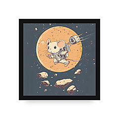 Mercury the Mouse Black Framed Canvas by Dancing Littles Jungle - Size 16x24 Inch