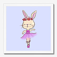 Renee the Rabbit White Framed Canvas by Dancing Littles Jungle - Size 16x24 Inch