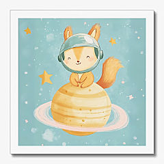 Saturn the Squirrel White Framed Canvas by Dancing Littles Jungle - Size 16x24 Inch