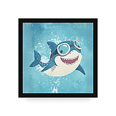 Seb the Splashing Shark Black Framed Canvas by Dancing Littles Jungle - Size 16x24 Inch