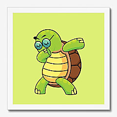 Taylor the Turtle White Framed Canvas by Dancing Littles Jungle - Size 16x24 Inch