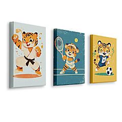 Triple Tigers Set of 3 Gallery Wrapped Canvas by Dancing Littles Jungle - Size 8x10 Inch