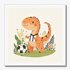 Troy the T-Rex Referee White Framed Canvas by Dancing Littles Jungle - Size 16x24 Inch