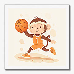 Chip the Dribbling Monkey White Framed Canvas by Dancing Littles Jungle - Size 16x24 Inch