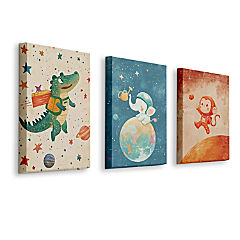 Cosmic Critters Set of 3 Gallery Wrapped Canvas by Dancing Littles Jungle - Size 8x10 Inch