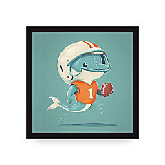 Dex the Touchdown Dolphin Black Framed Canvas by Dancing Littles Jungle - Size 16x24 Inch