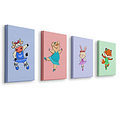 Farmyard Fun Set of 4 Gallery Wrapped Canvas by Dancing Littles Jungle - Size 8x10 Inch
