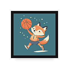 Fletcher the Layup Fox Black Framed Canvas by Dancing Littles Jungle - Size 16x24 Inch
