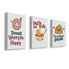 Foodie Trio Set of 3 Gallery Wrapped Canvas by Dancing Littles Jungle - Size 8x10 Inch