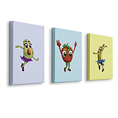 Fruit Friends Set of 3 Gallery Wrapped Canvas by Dancing Littles Jungle - Size 8x10 Inch