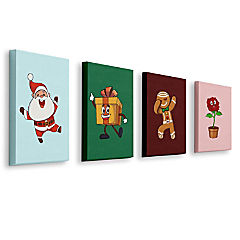 Holiday Cheer Set of 4 Gallery Wrapped Canvas by Dancing Littles Jungle - Size 8x10 Inch