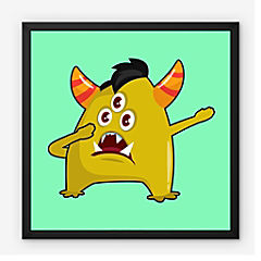Mojo the Mohawk Monster Black Framed Canvas by Dancing Littles Jungle - Size 16x24 Inch