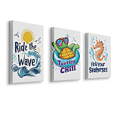 Ocean Vibes Set of 3 Gallery Wrapped Canvas by Dancing Littles Jungle - Size 8x10 Inch