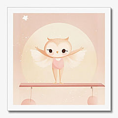 Orla the Balancing Owl White Framed Canvas by Dancing Littles Jungle - Size 16x24 Inch