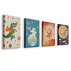 Space Explorers Set of 4 Gallery Wrapped Canvas by Dancing Littles Jungle - Size 8x10 Inch