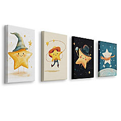 Star Wizards Set of 4 Gallery Wrapped Canvas by Dancing Littles Jungle - Size 8x10 Inch