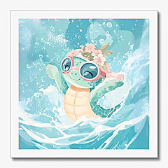 Tessa the Tidal Turtle White Framed Canvas by Dancing Littles Jungle - Size 16x24 Inch
