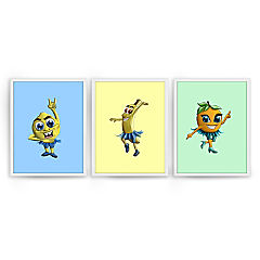 Fruitiverse Set of 3 Gallery Wrapped Canvas by Dancing Littles Jungle - Size 8x10 Inch