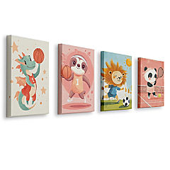 Final Four Set of 4 Gallery Wrapped Canvas by Dancing Littles Jungle - Size 8x10 Inch