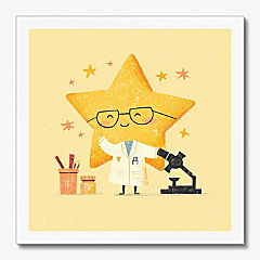 Star Scientist White Framed Canvas by Dancing Littles Jungle - Size 16x24 Inch
