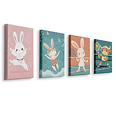 Bunny Blitz Set of 4 Gallery Wrapped Canvas by Dancing Littles Jungle - Size 8x10 Inch