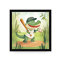 Carter the Curveball Crocodile Black Framed Canvas by Dancing Littles Jungle - Size 16x24 Inch