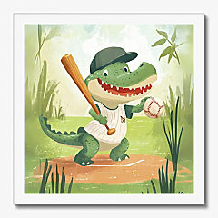 Carter the Curveball Crocodile White Framed Canvas by Dancing Littles Jungle - Size 16x24 Inch