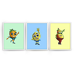 Citrus Circus Set of 3 White Framed Canvas by Dancing Littles Jungle - Size 16x24 Inch